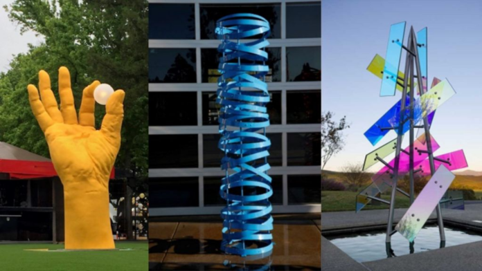 The pieces, which include “Hand of the Land,” “Reflections” and “Barrel Rings,” amount to about $400,000 in sculpture, Huether said in a video screened at the Feb. 10 council meeting. The pieces are being loaned to the city free of cost.
