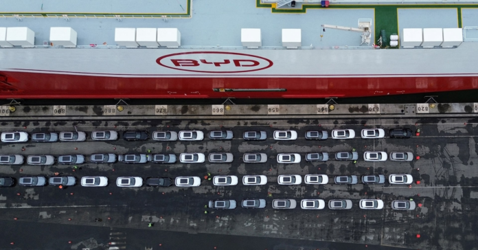 Item 1 of 3 A drone view shows a BYD vessel at the Itajai port in Santa Catarina, … [3529 chars]