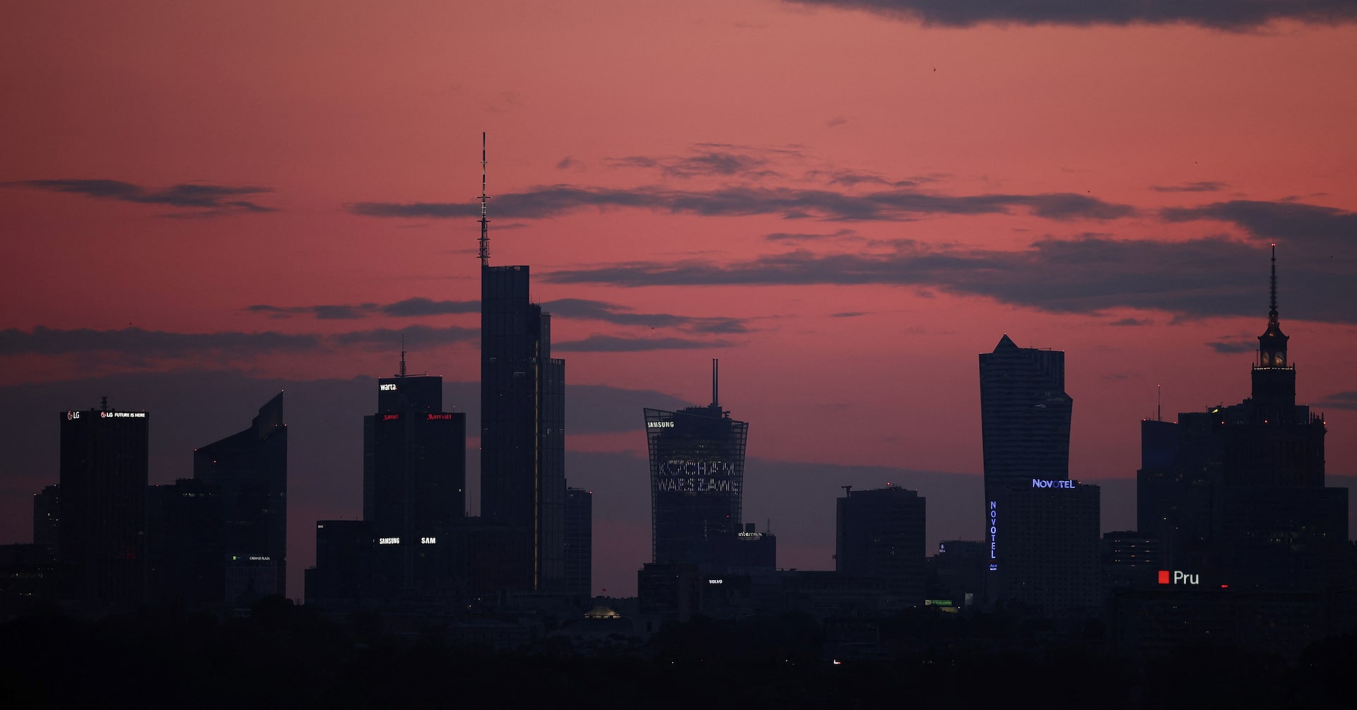 Skyline of skyscrapers is seen after sunset in Warsaw, Poland, June 28, 2023. REUTERS/Kacper Pempel/File Photo Purchase Licensing Rights , opens new tab